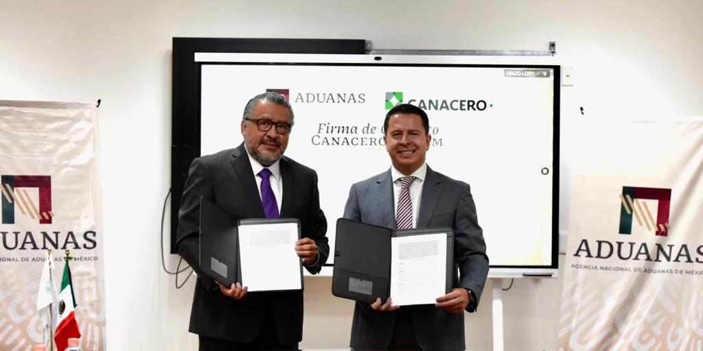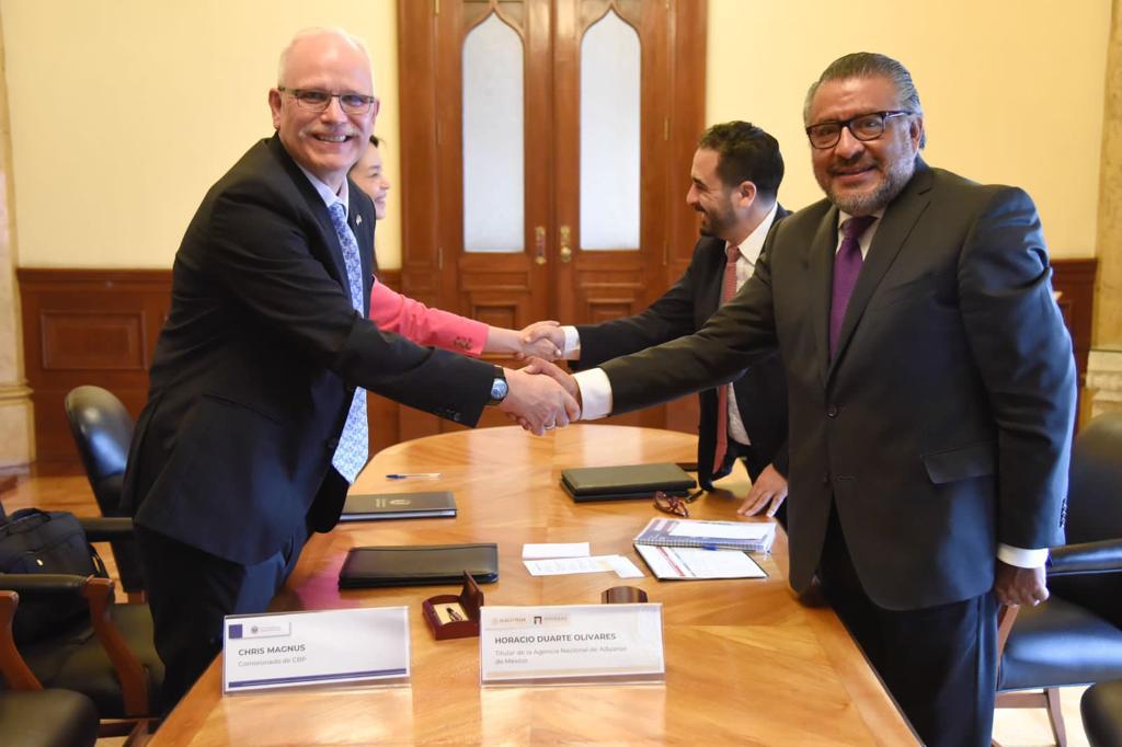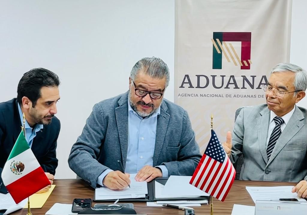 Aduanas de México y Protección Fronteriza de EU firman Memorándum de Entendimiento para intercambiar inteligencia, inspecciones conjuntas y tácticas de seguridad.