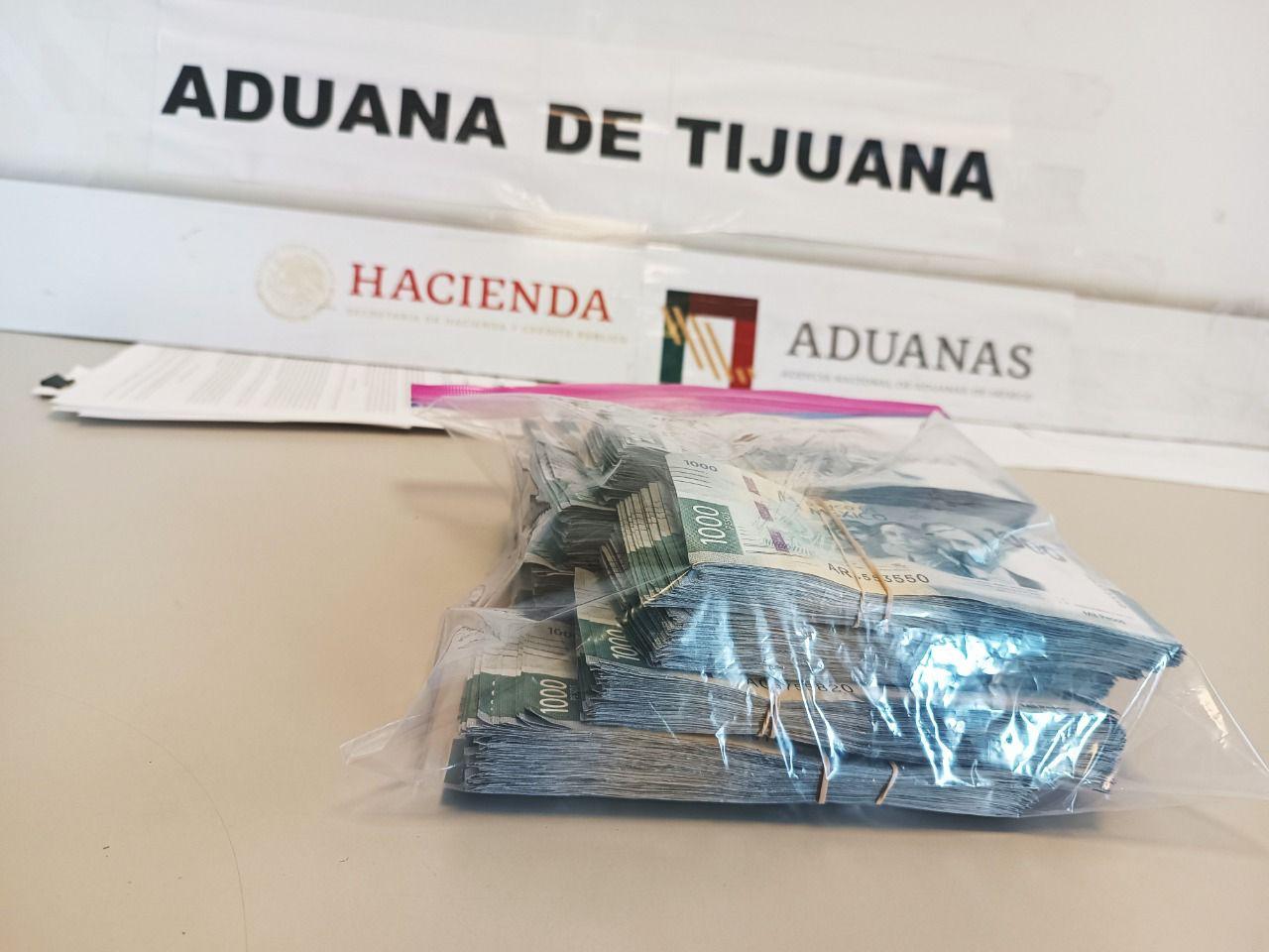 Aduanas de México y Guardia Nacional decomisa más de un millón de pesos en cruce fronterizo de la Aduana de Tijuana