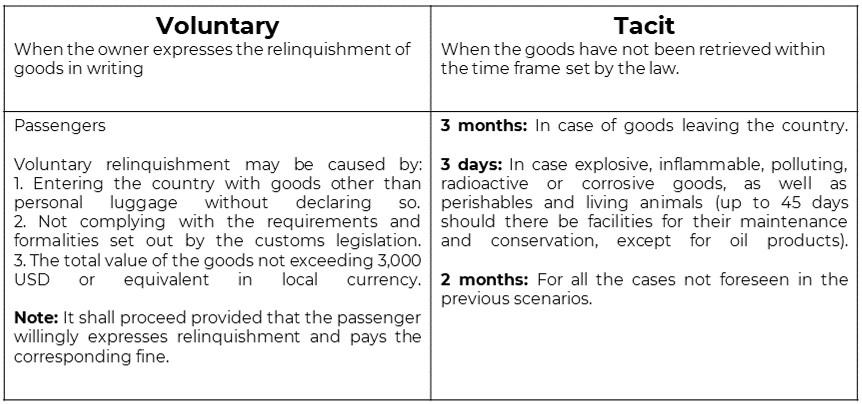 - The goods seized by the customs authorities resulting from inspection of the goods and when they are not retrieved within the corresponding months after the decision was communicated to the taxpayer.