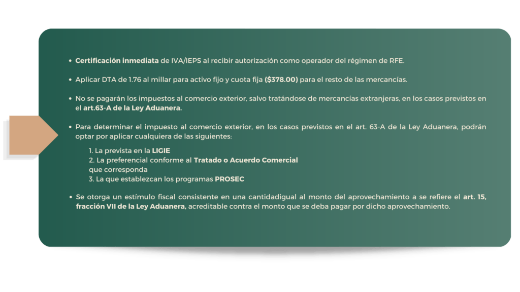 Inicio Autorización para destinar mercancia al RFE Habilitación de RFE X Fiscales Operativos Administrativos Ver decreto de Beneficios Ficha de Trámite