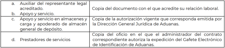 Cabe señalar que, de conformidad con el numeral XI de los citados Lineamientos, para la expedición del Gafete Electrónico de Identificación de Aduanas, una vez generada la cita correspondiente se deberán presentar a la aduana de adscripción en el día y hora indicados, únicamente con la siguiente documentación: