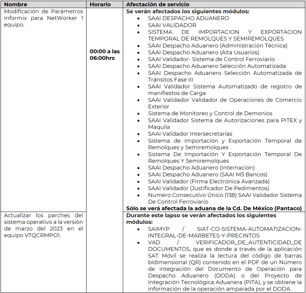 Por lo anterior, se exhorta a los usuarios de comercio exterior a tomar las acciones pertinentes para reducir el impacto, anticipando sus operaciones urgentes.