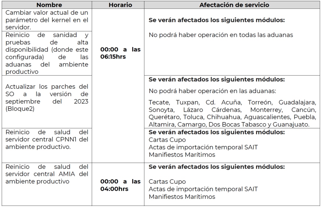 Por lo anterior, se exhorta a los usuarios de comercio exterior a tomar las acciones pertinentes para reducir el impacto, anticipando sus operaciones urgentes.