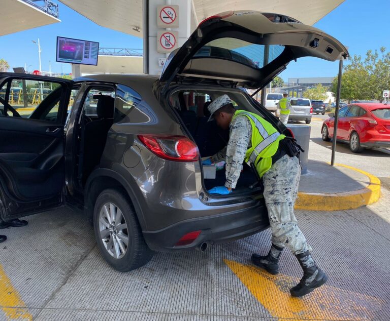 En cumplimiento de la Estrategia Nacional de Seguridad Pública del gobierno federal, en Baja California, integrantes de la Guardia Nacional (GN) y de la Agencia Nacional de Aduanas de México (ANAM), detuvieron a una persona que pretendía ingresar a territorio mexicano con posible droga sintética cristal, oculta en el compartimiento para llanta de refacción.