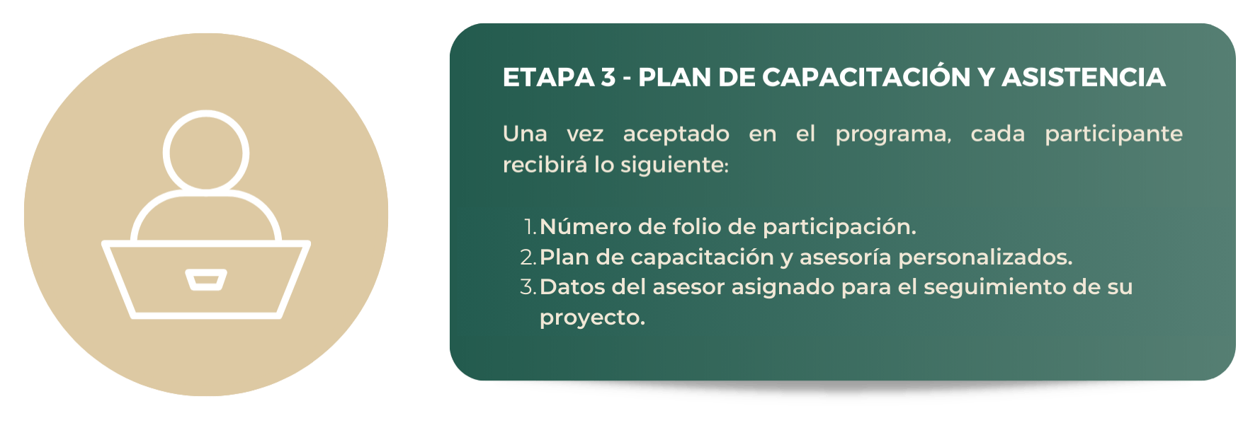 Disponer de tiempo para participar en las sesiones de capacitación y las asesorías individuales que son parte integral del programa que se realizaran de manera virtual.
