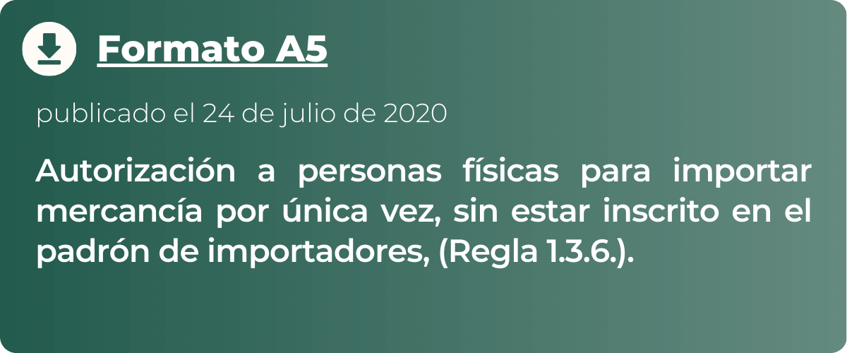 En este Apartado se localizan los formatos oficiales de comercio exterior y los modelos auxiliares que utilizan los usuarios en materia de comercio exterior, contenidos en el Anexo 1 de las Reglas Generales de Comercio Exterior para 2020.