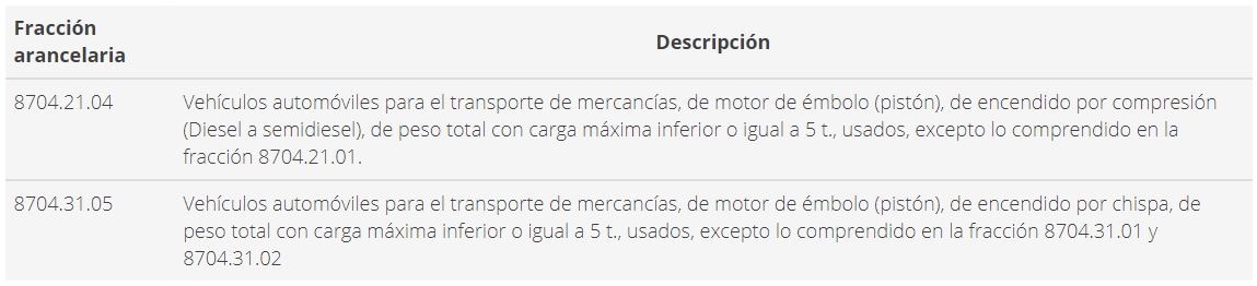 Fracciones Arancelarias de vehículos para el transporte de mercancías