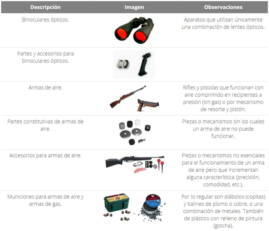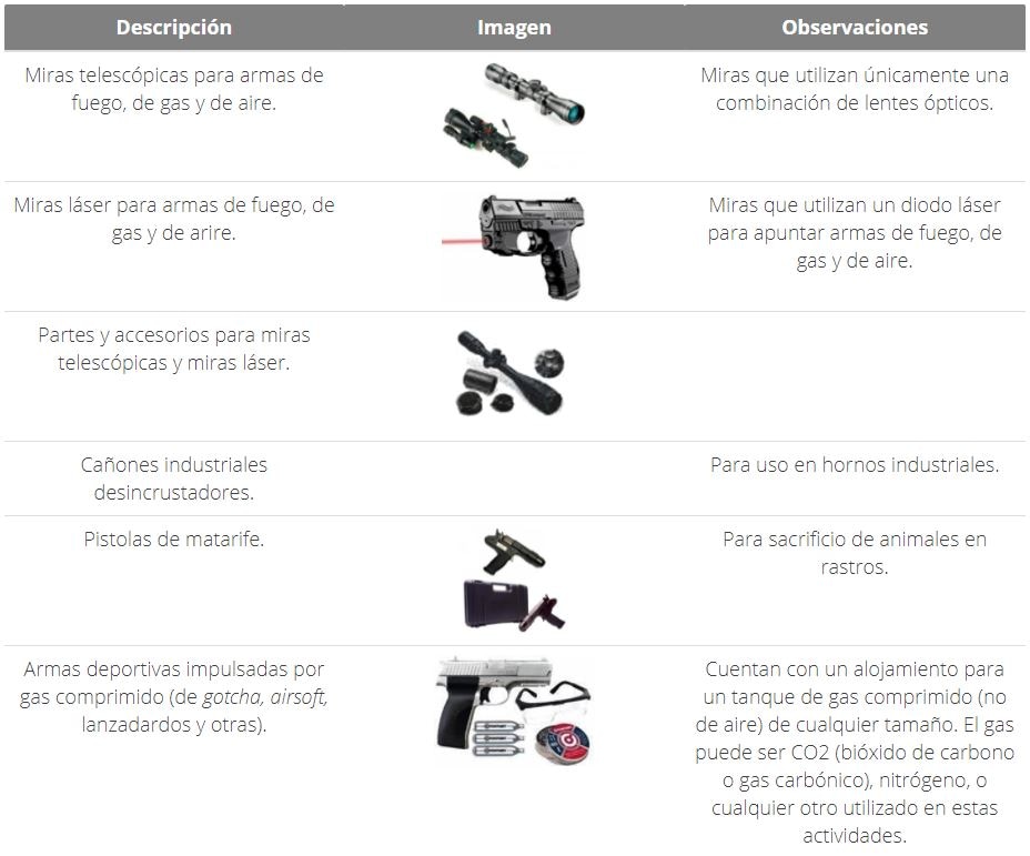 Los rifles y pistolas accionadas por gas comprimido en recipientes a presión CO2, gas carbónico o cualquier otra sustancia regulada por la Ley Federal de Armas de Fuego y Explosivos y su Reglamento, sus municiones en el deporte conocido como paintball o gotcha; deberán obtener previamente un permiso extraodinario de importación de la Secretaría de la Defensa Nacional.