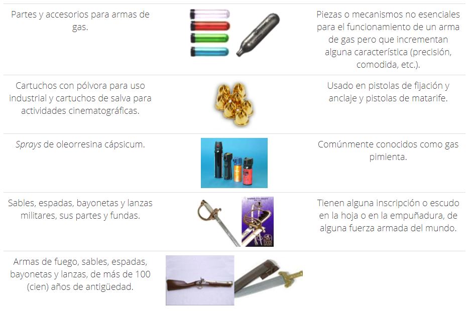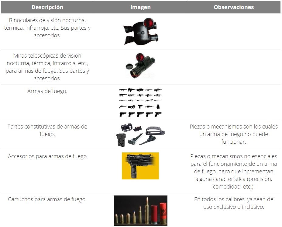 Mercancía regulada por parte de la Secretaría de la Defensa Nacional