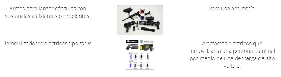 - Con tres a diez años de prisión: al que introduzca al territorio nacional, en forma clandestina, armas de fuego no reservadas para el uso del Ejército, Armada y Fuerza Aérea.